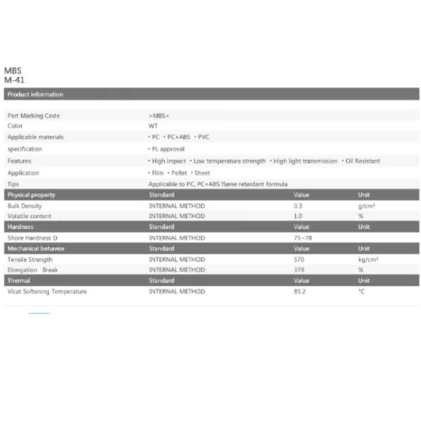 Corrosion Resistant MBS Material High Transparent Plastic Raw Material Images |